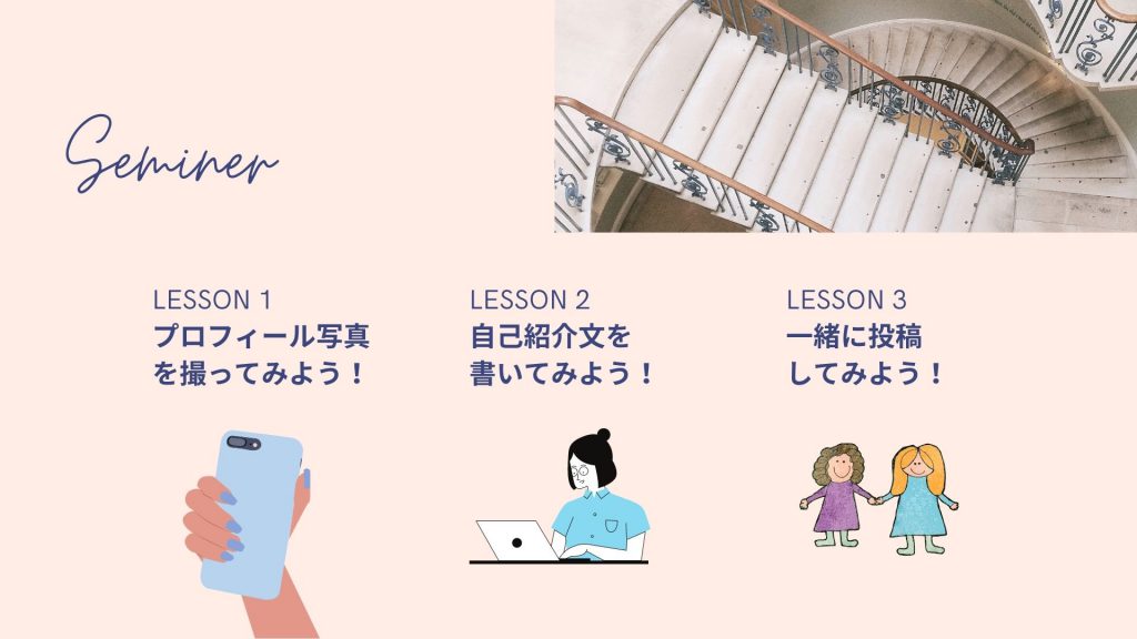 当日は、スマホでみなさんに実際に撮影していただきますので、お手元にスマホをご準備くださいね^^ - LESSON 2:プロフィール文章を考えてみよう!