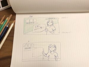 そして、この考えを絵コンテにまとめ、一旦お打ち合わせをさせて頂きました。